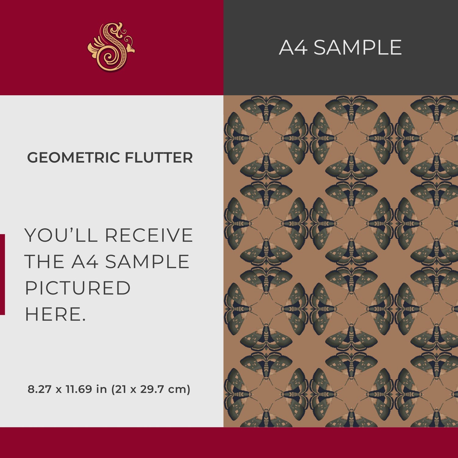 - Geometric Flutter: Moody green moths on a warm tan-brown canvas.