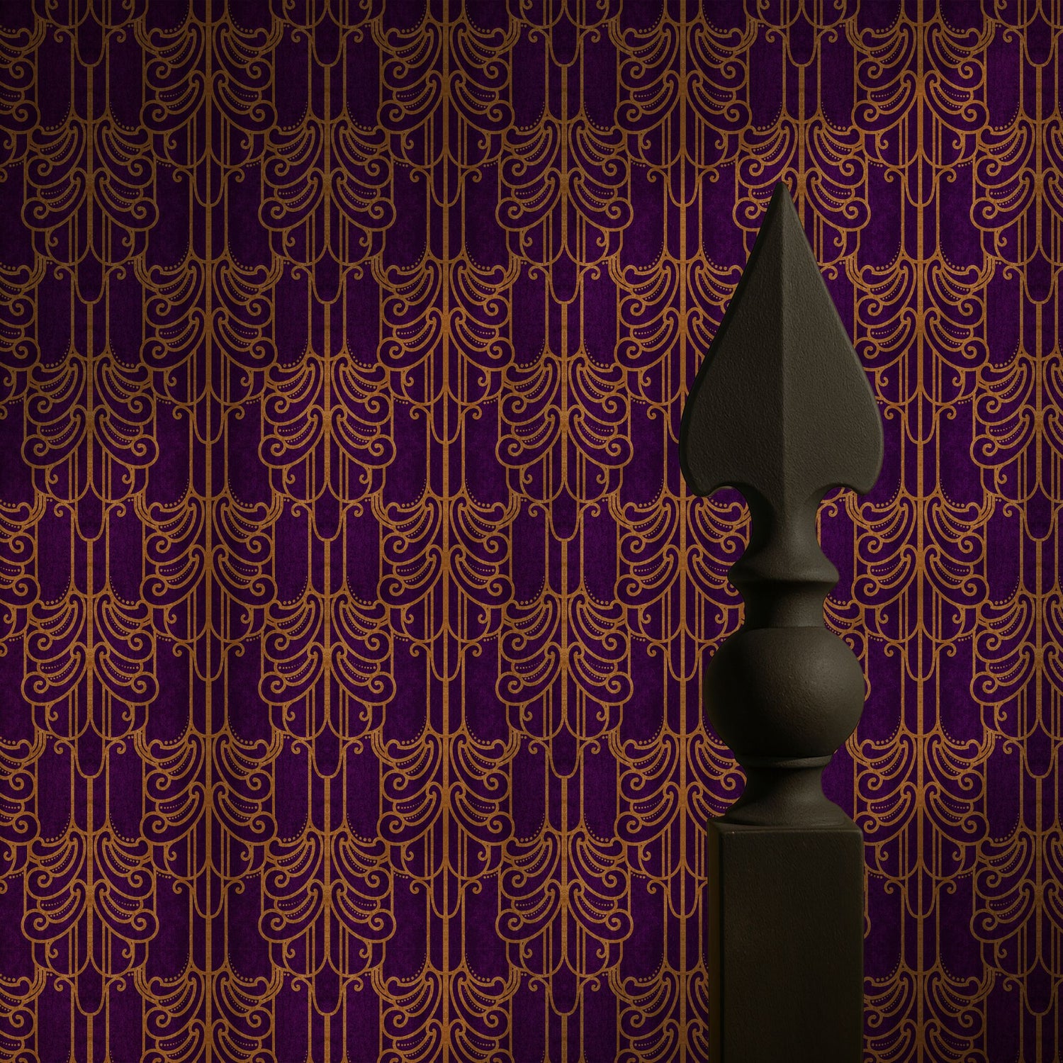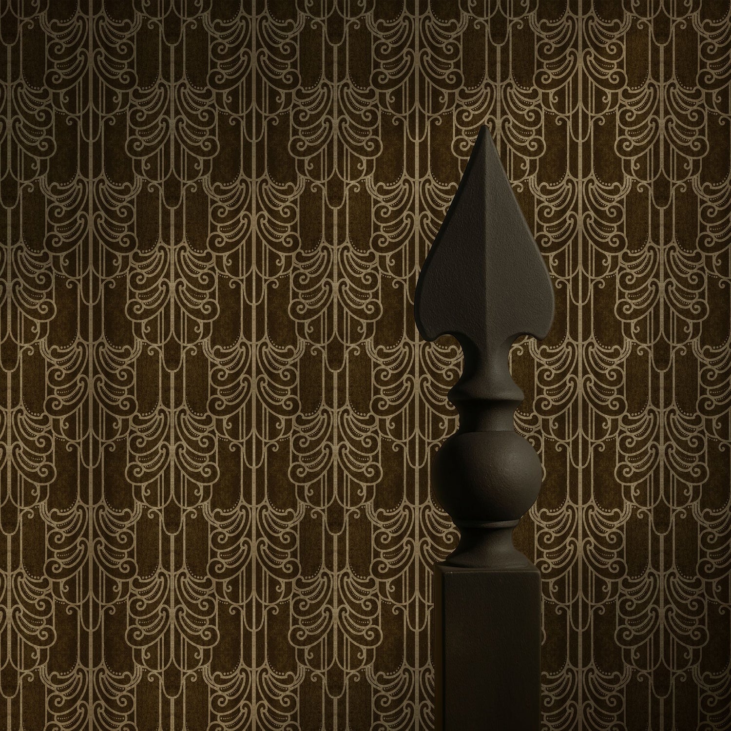 "Gritty Luxe" presents a moody interpretation of Art Nouveau wallpaper, where opulence meets imperfection. The design unfolds as a richly textured pattern, evoking the quiet decadence of aged interiors and the beauty of surfaces shaped by time. Its layered detailing and atmospheric depth create a sense of old-world grandeur, reimagined through a contemporary, expressive lens.
