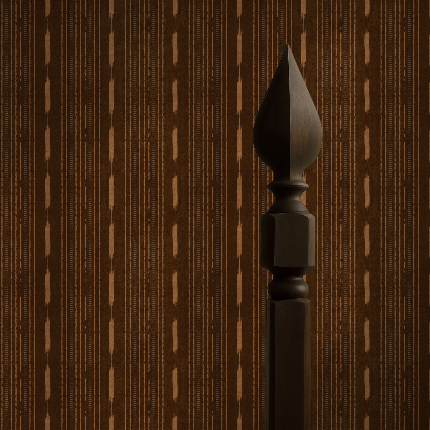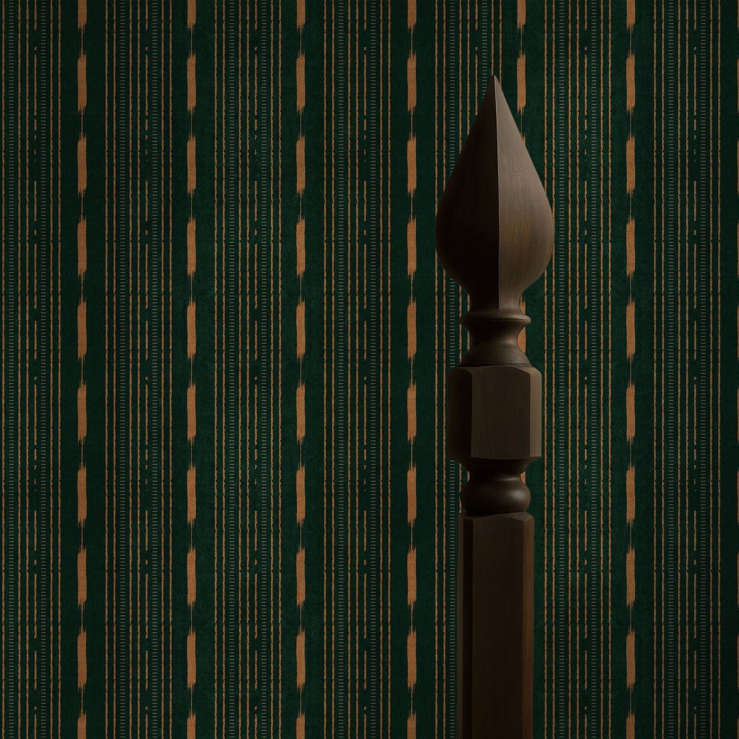 - Grain & Groove: Dark, moody maroon & orange striped wallpaper.