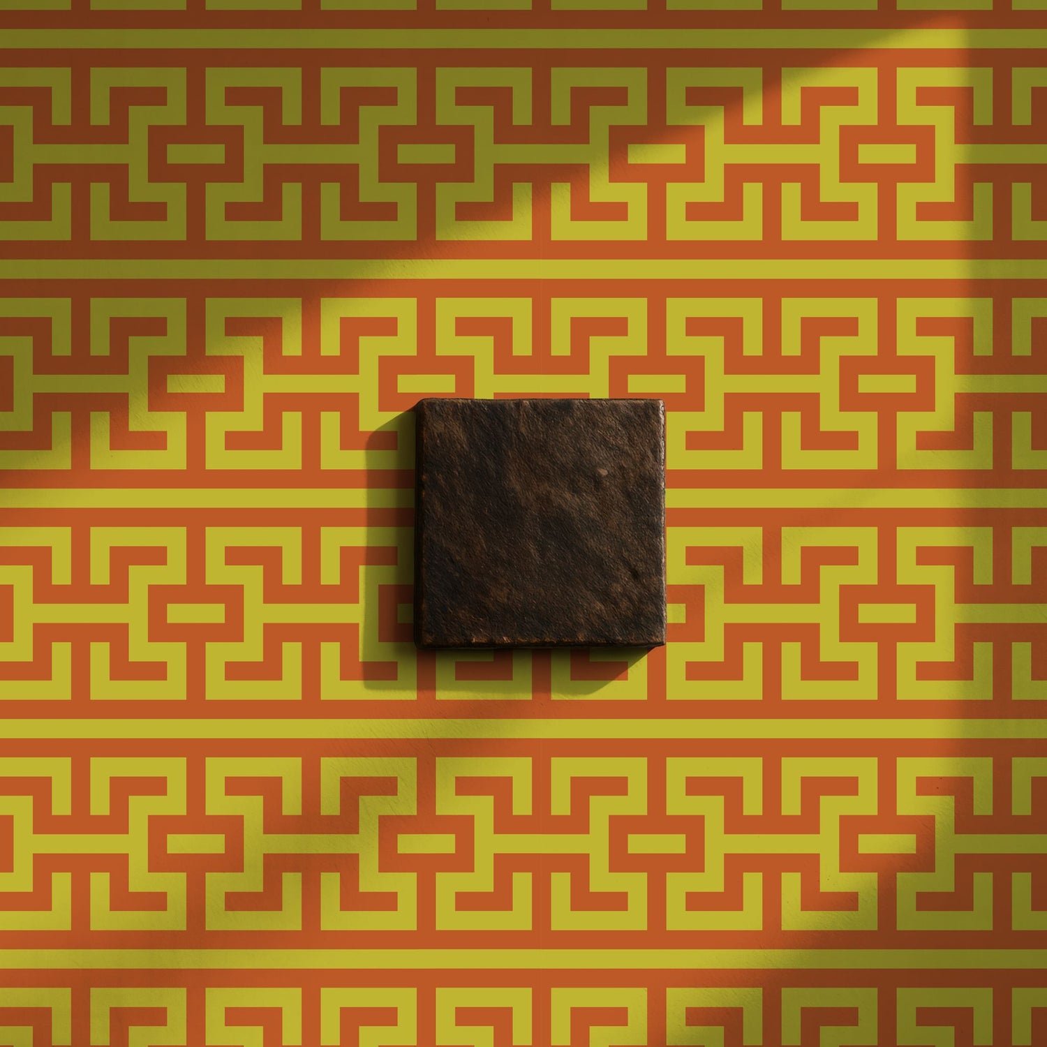 • Citrus Metro: Bright yellow & orange art deco motif wallpaper.
