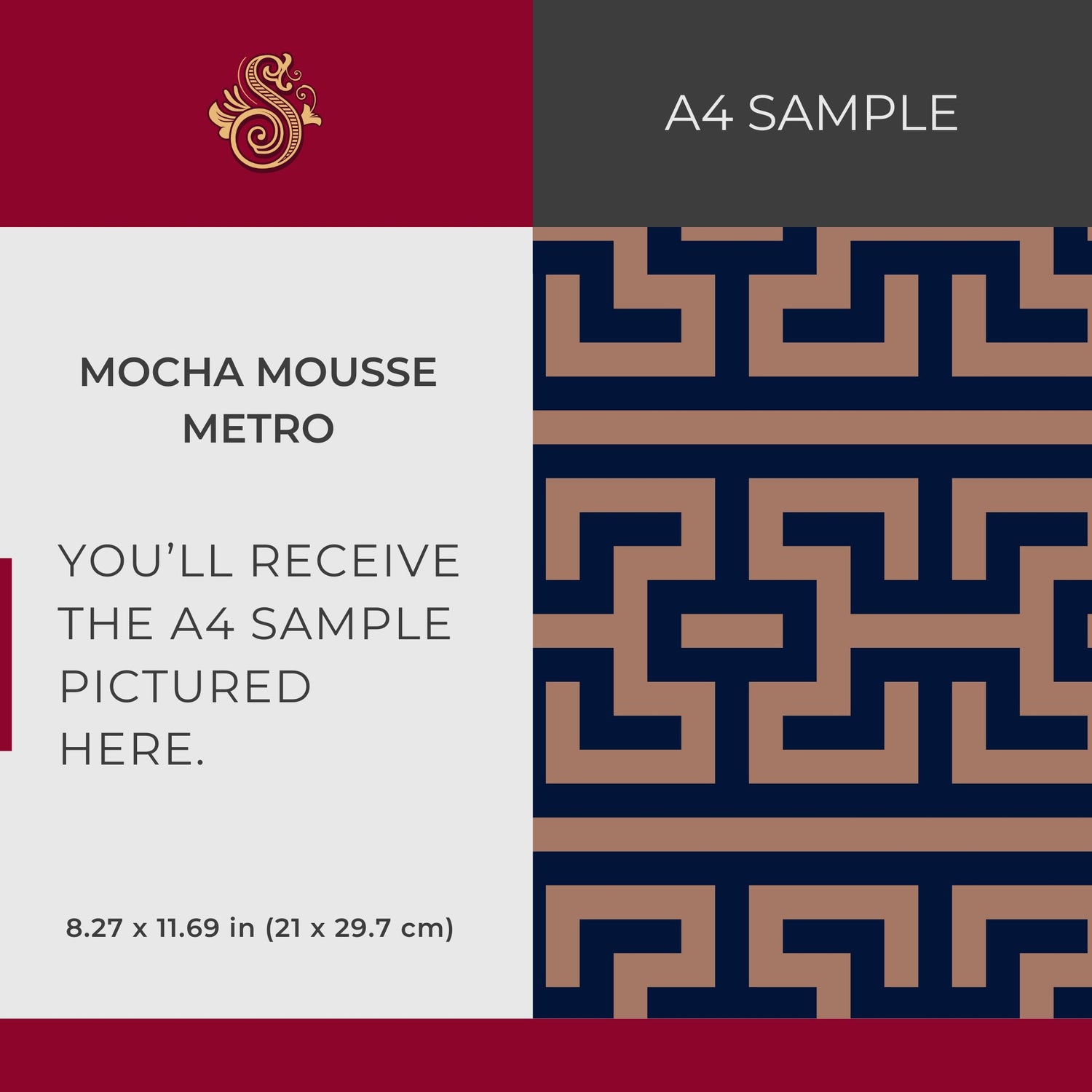 • Mocha Mousse Metro: Blue & Pantone mocha mousse brown art deco wallpaper.