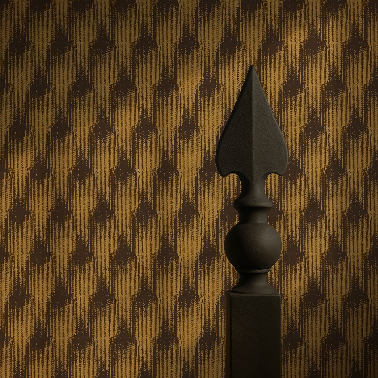 - Worn Deco: Deep brown and beige old-world wallpaper.