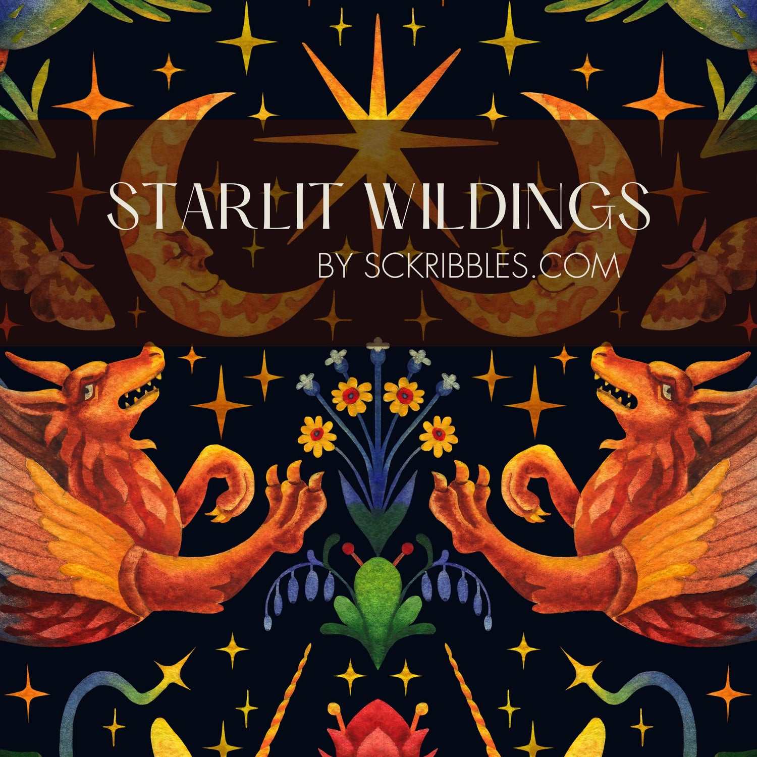Starlit Wildings | Bright & Colorful Mythical Creatures Wallpaper